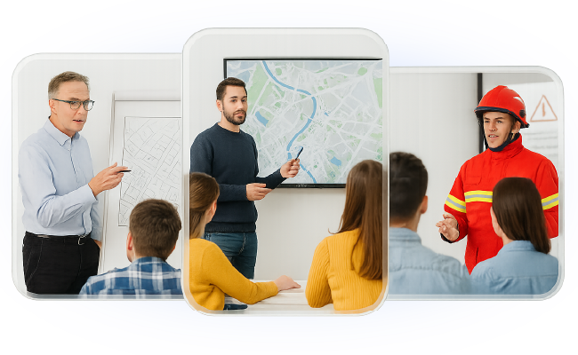 Formación especializada en catastro, topografía, SIG, gestión de riesgos y normativa de seguridad, dirigida a estudiantes, profesionales y entidades públicas.