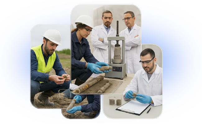Nuestros servicios incluyen ensayos de campo y laboratorio, determinación de la capacidad portante, análisis de estabilidad de taludes y control de compactación, garantizando proyectos seguros, sostenibles y adaptados a las condiciones del terreno.