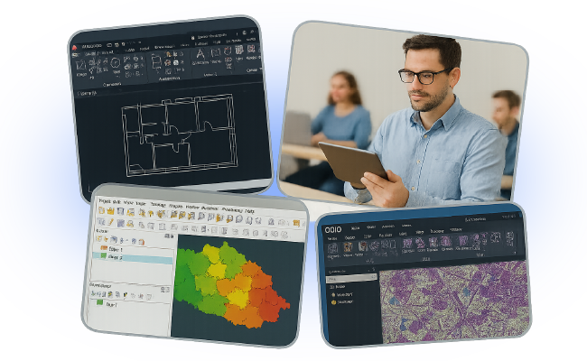 Implementación y capacitación en AutoCAD, ArcGIS, QGIS y ArcGIS Pro, apoyando a instituciones y empresas en análisis territorial, planificación urbana y gestión ambiental.